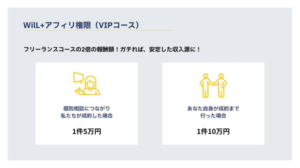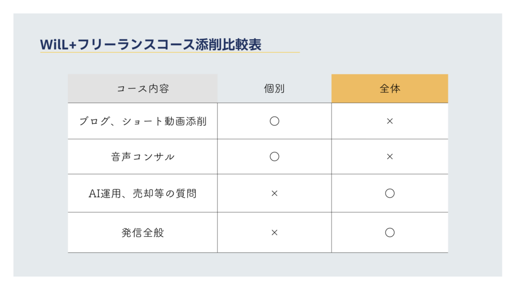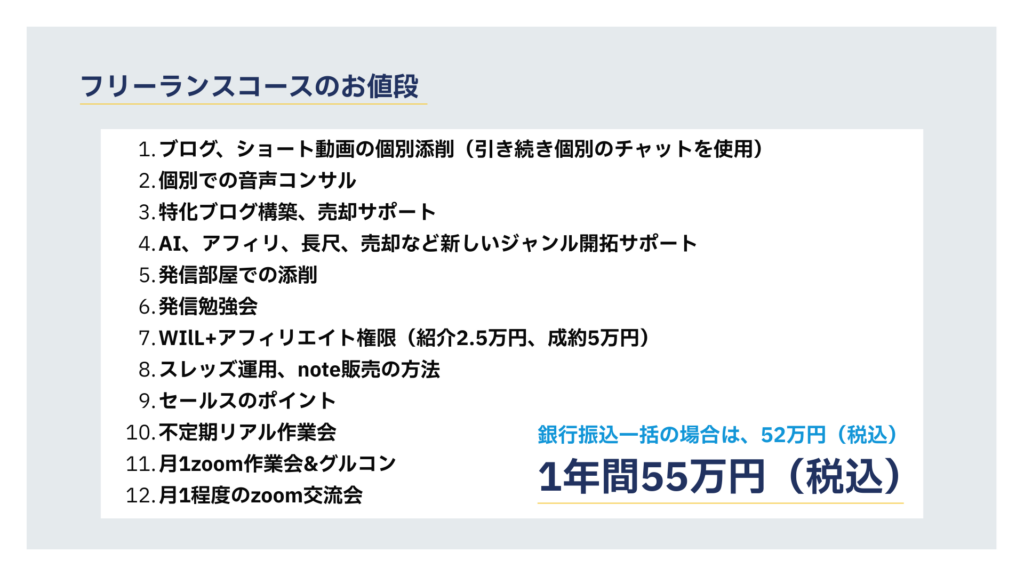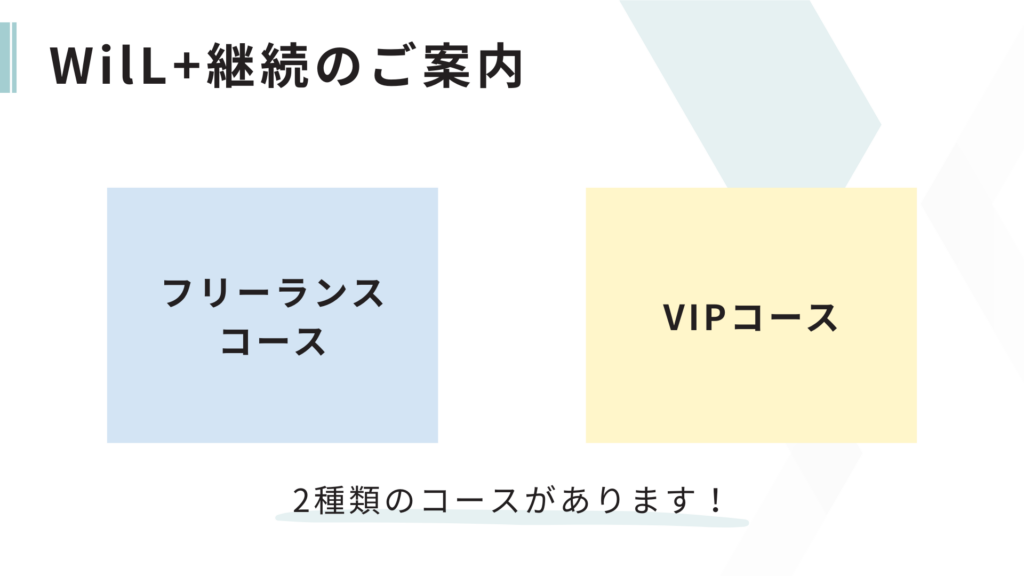 上位コースへの変更は差額をお支払いいただければ可能です(フリーランスコースからVIPコースへの変更)。
