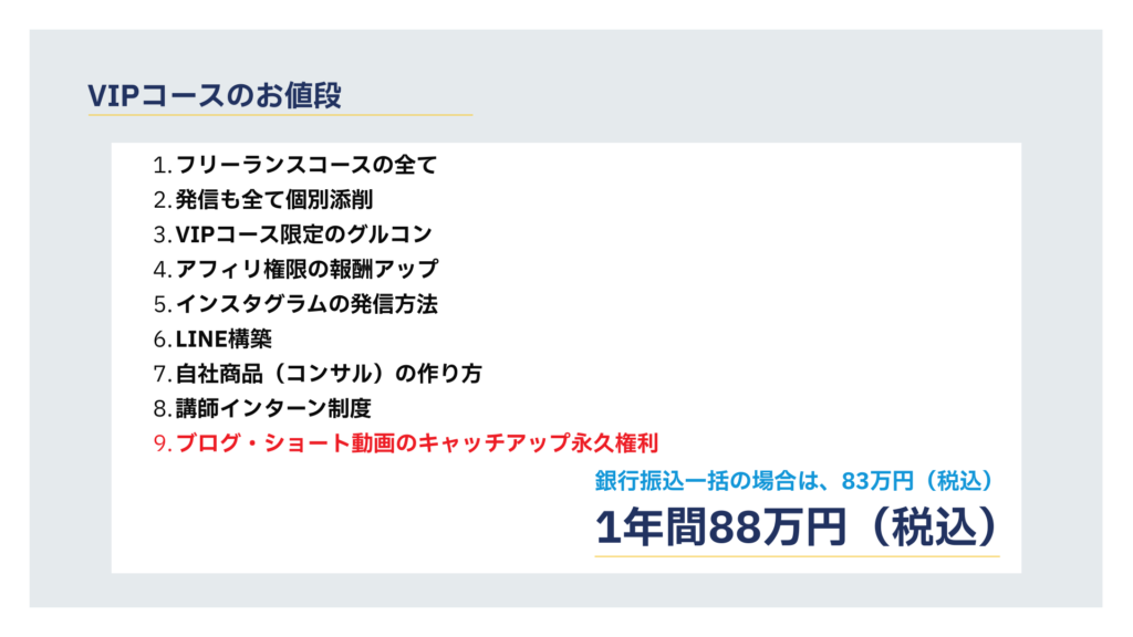 今回、永久権利などがあるVIPコースは私たちも全力でオススメさせていただいています!
