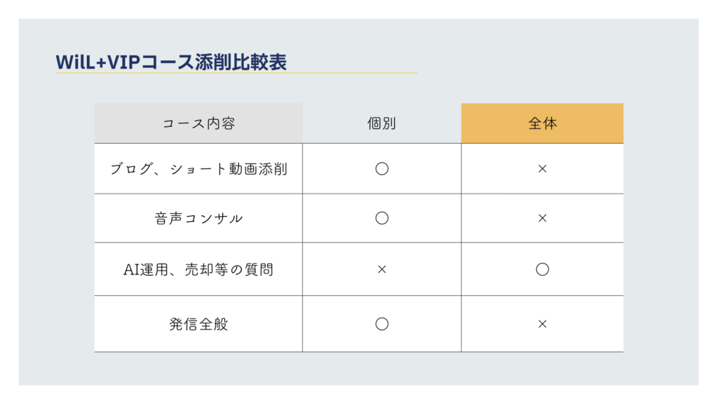 ただし、VIPコース限定の「ブログ・ショート動画キャッチアップ永久権利」はつきませんので、ご了承ください。